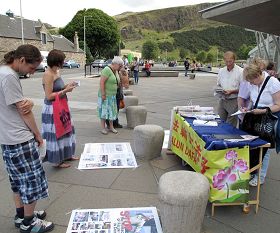 ![]() 苏格兰议会大厦门外,人们认真了解法轮功真相 |