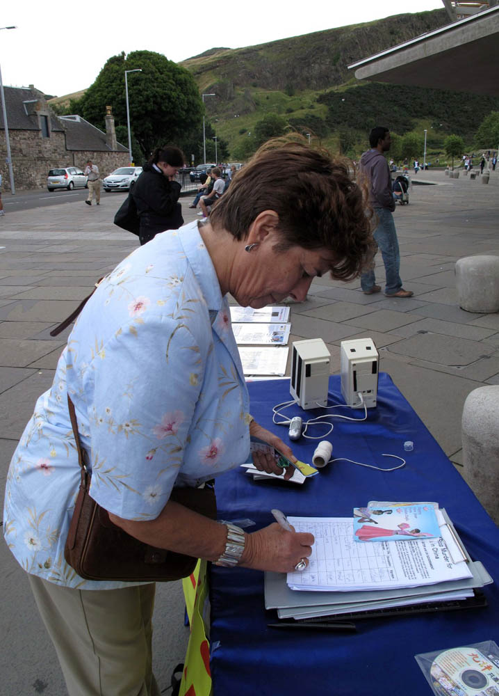 彼得是位苏格兰老人。他在签字后告诉记者他已经多次在爱丁堡游行中看到法轮功。说到迫害,老人说:“都这么长时间了(迫害还在继续),中共真是不可理喻。保证人的信仰自由应该是最起码的。”