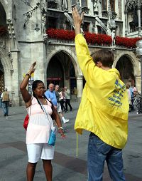 不少到慕尼黑旅游的中国人对法轮功学员的活动表现出很大的兴趣。两位来自河北省石家庄的老人长时间观看法轮功学员炼功,他们表示以前就知道法轮功好,但是共产党不让炼,还抓法轮功学员,让他们感到不可思议,这两位老人当场做了三退声明。