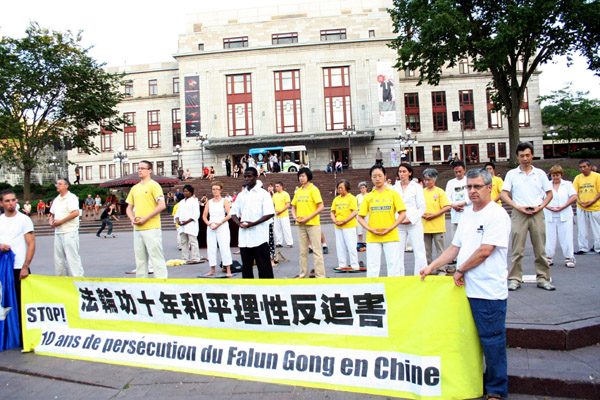 ![]() 法轮功学员在魁北克省议会大楼附近的公园举行集会,揭露中共对信仰“真、善、忍”的法轮功修炼者长达十年的迫害。 |