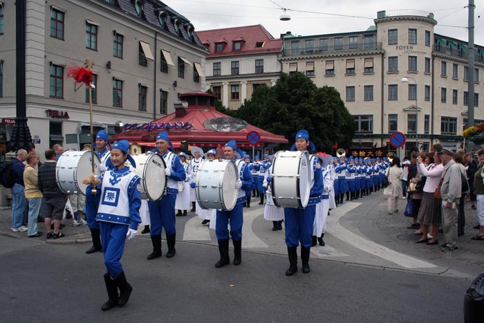 八月十五日这天,法轮功学员在为期一周的第十九届哥德堡文化节即将落下帷幕之际,举办大型游行,向这里的人们展示法轮大法的美好,同时揭露中共迫害法轮功的真相。欧洲天国乐团也首次参与了哥德堡的文化节,用音乐展现法轮大法的美好。他们的演奏吸引了众多的人们。