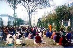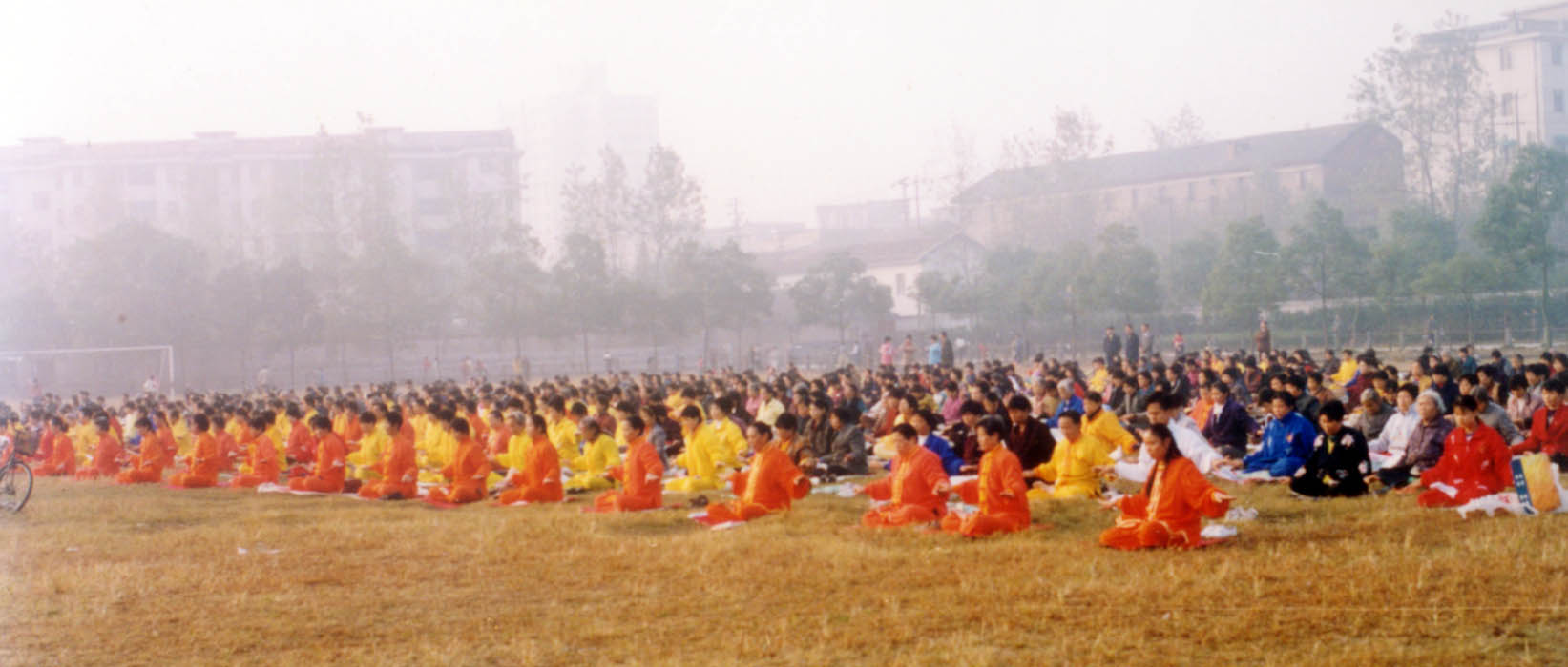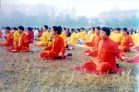 照片:一九九八年沈阳夏宫广场的法轮功炼功场面