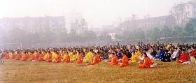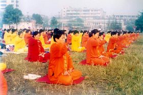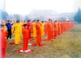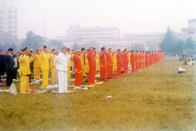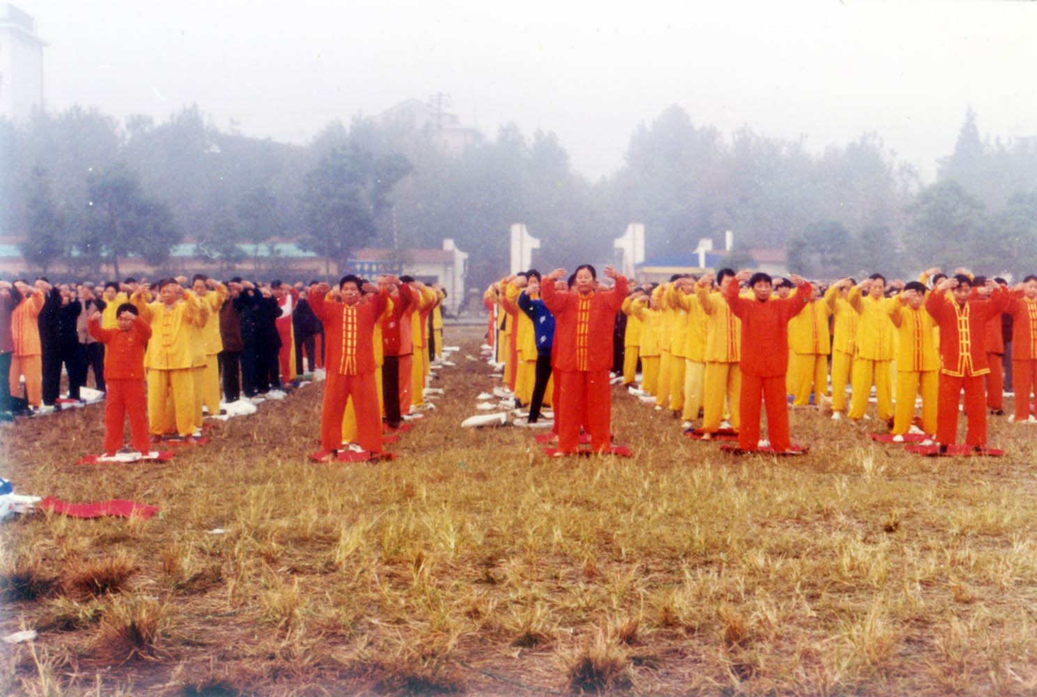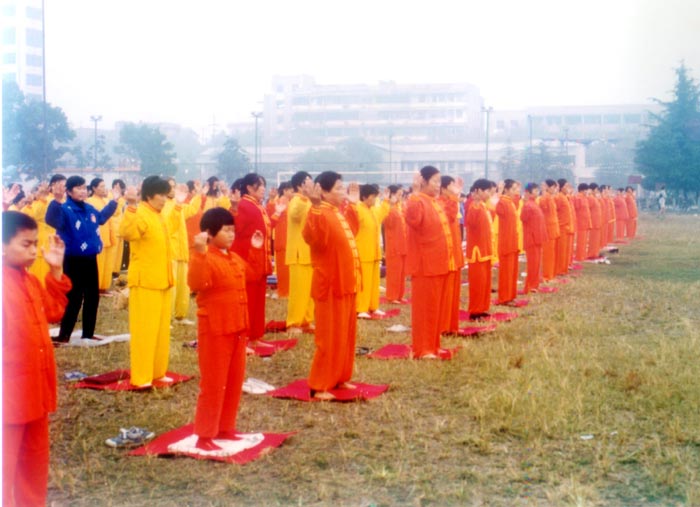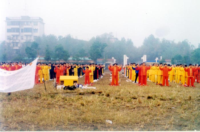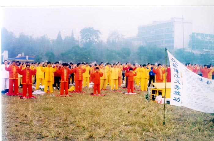 【明慧网二零零九年八月二十二日】一九九八年八月八日,湖南省常德市大法学员在常德市老体育广场集体炼功。