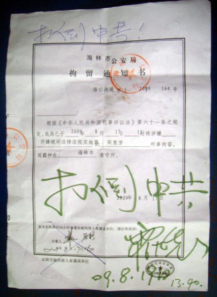 ![]() 霍九先穿着写有“打倒中共,自由万岁”的背心到公安局要人 |
