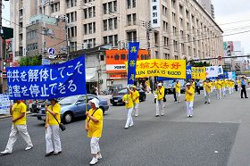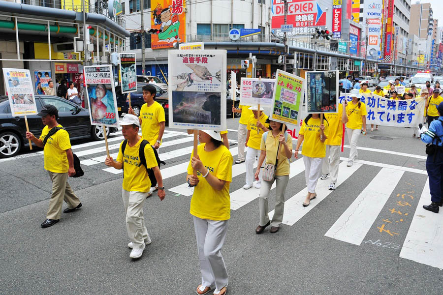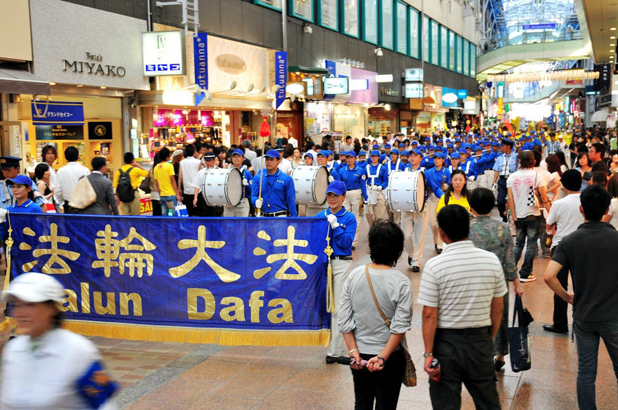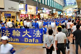 【明慧网二零零九年八月二十四日】二零零九年八月二十二日,日本法轮功学员及日本天国乐团在关西重镇大阪(Osaka)和神户(Kobe)举行了讲真相迫害游行,使更多的关西民众进一步了解了法轮功(又称法轮大法)和发生在中国的迫害真相。