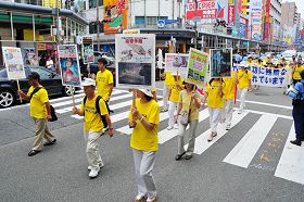 路人看了游行后纷纷表达了他们的想法。中本先生说,“在中国没有真正的民主不行啊。中国共产党一党专政,一味地压制。对于各种宗教不能象日本这样真正地给予自由是不行的。”