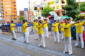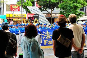 在神户元町车站前,法轮功学员演奏和进行功法表演时,日本人尼田先生久久不肯离去,他说,“我去过中国很多次,这样精彩的表演一次也没看过。我很了解法轮功。法轮功很好,可惜在中共统治下很难啊!”在说到法轮功在中国被迫害时,他关切地问:“这些法轮功学员能回中国吗?他们的安全没问题吗?”