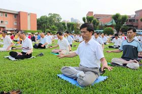 ![]() 邱先生参加二零零九年八月份台湾北区剑潭学法交流的晨炼 |