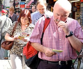 一路上,很多人接过学员沿途发放的法轮功真相传单,随即迫不及待地阅读起来。阅读时他们的目光往往变得很凝重。