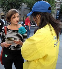 很多人在初步接触真相后希望更深入了解法轮功。他们普遍问一个问题:中共为什么要迫害这么平和的功法?记者发现来自原东欧共产主义国家的人对共产党的本性看得很清楚。除了前面的波兰女孩波娃外,记者还在签字支持法轮功反迫害的正义人士中注意到了安娜。