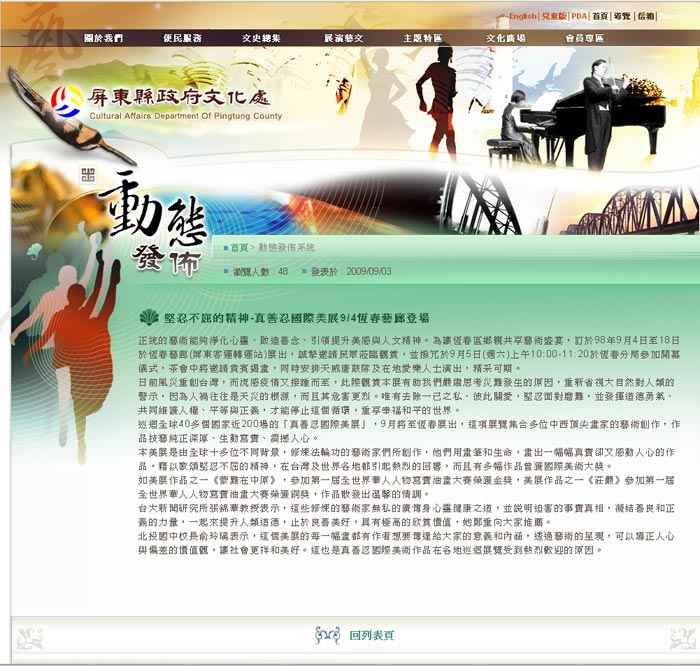 屏东县政府文化局网页刊登“真善忍国际美展”讯息,鼓励民众前来观赏