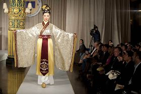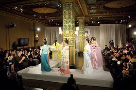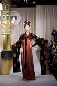 当天在曼哈顿乔治王子宴会厅里,来自三十八位选手的近一百套汉服入围决赛。在T字型舞台上,模特儿们一一展示入围作品,唐装的富贵大气,宋服的婉约、自然,大明的复古出新,沁透着中华深厚文化底蕴,令来宾们深深陶醉于中华灿烂辉煌的文化中。
