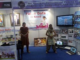 还有一位白发老人说是通过“德里电视”频道第一次知道了法轮功(编者注:亚洲天国乐团来印度新德里洪法,德里电视台曾就此采访并报道),这次一来到书展看到法轮功马上就学,快乐得象个小孩似的连说:“很好!很好!”