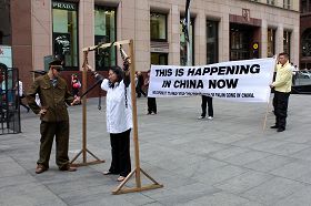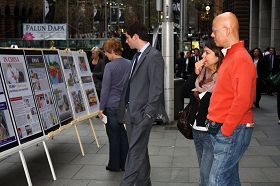 天国乐团演奏了《法轮大法好》等曲目,嘹亮的乐曲震撼着路人的心灵。他们有的接过真相资料自己阅读;有的主动前去展台签名表示支持;有的和法轮功学员交谈,表示深深同情法轮功,痛恨中共的残忍迫害;有的则站在酷刑展前久久不愿离去,以表示和法轮功学员站在一起抗议中共的非法迫害。