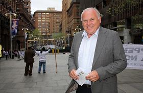 在附近商务楼里办公的杰克(JACK)看到法轮功学员的功法展示后表示:“看上去很祥和的人们在炼功,我看不出有什么问题使得中共要迫害他们。我们很幸运生活在澳洲,我们可以自由地选择自己想要修炼什么,或者去教堂和佛堂。最近中国政府在这里庆祝六十周年,如果中国人民在遭受不幸,这是很可悲的事。我们在澳洲可以买到许多中国制造的衣服等,如果我们买了这些衣服是帮助了中国人民就好了,如果是帮了中国政府就很遗憾了。”