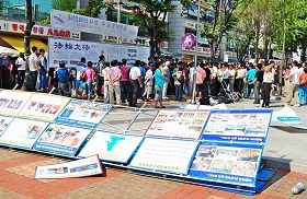 申姓法轮功学员也表示,最近在安山地区攻击退党服务中心的中国人增加了不少,在举行“六千万退党声援”活动前一天的十二日,在安山为中国人放映《九评》录像的投映设备和器材被暴徒攻击受损。