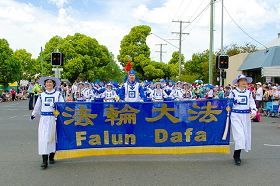 【明慧网二零零九年九月二十一日】二零零九年九月十九日,位于澳洲昆省东南部大分界岭地带的图文巴市(Toowoomba)一派喜气洋洋。这天,数万当地民众和来自四面八方游客兴高采烈地观赏了绚丽多采的花节大游行。法轮功学员应邀第十一次参加了该游行,并受到观众们的热烈欢迎。