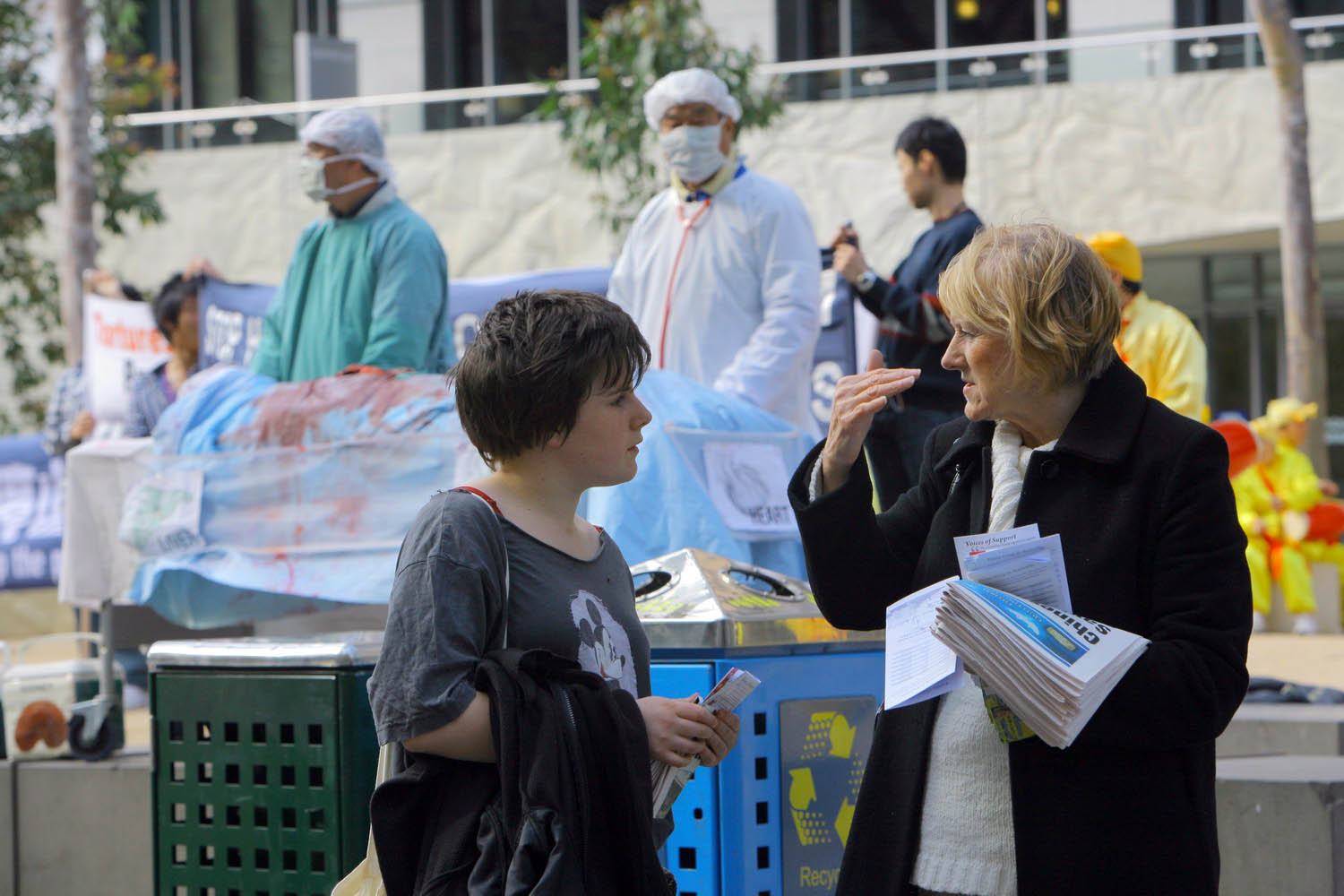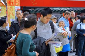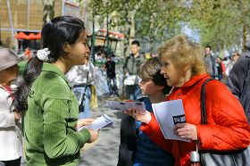 ![]() 市民接过传单询问真相 |