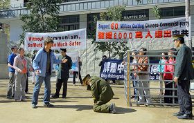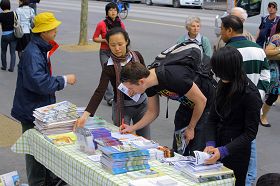 ![]() 路人在退党摊位上签名声援 |