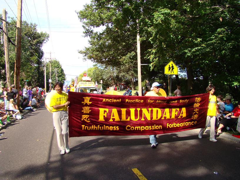 【明慧网二零零九年九月二十二日】二零零九年九月十九日,美国圣路易法轮功学员参加了科克沃特市第三十九届绿树节游行。
