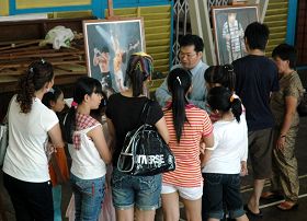 上午九时,美展一开始就吸引了许多吉胆岛老前辈前来观赏。吉胆岛的导游们在得知这难得的美展后,陆续引导了来自国内外的游客前来观赏,其中包括香港、台湾、菲律宾、印尼以及新加坡等地的游客。