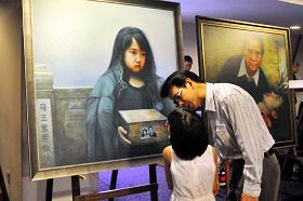 为了使有缘人了解真相,会场外的大厅和二楼中厅同时举办了真善忍美展。展示的多幅大法弟子创作的美术作品,既气势磅礴又蕴涵着无限天机,巨大的能量感染着驻足观赏的人们。