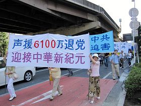【明慧网二零零九年九月二十三日】(明慧记者邵凌日本东京报道)在大纪元退党网站上声明退出中共党、团、队的人数已近六千一百万之际,二零零九年九月二十日,日本退党服务中心在东京举办了声援六千一百万勇士退出中共的游行,呼吁更多的日本人声援中国民众的退党大潮及在日中国人了解真相“三退”(退出中共党、团、队)自救。