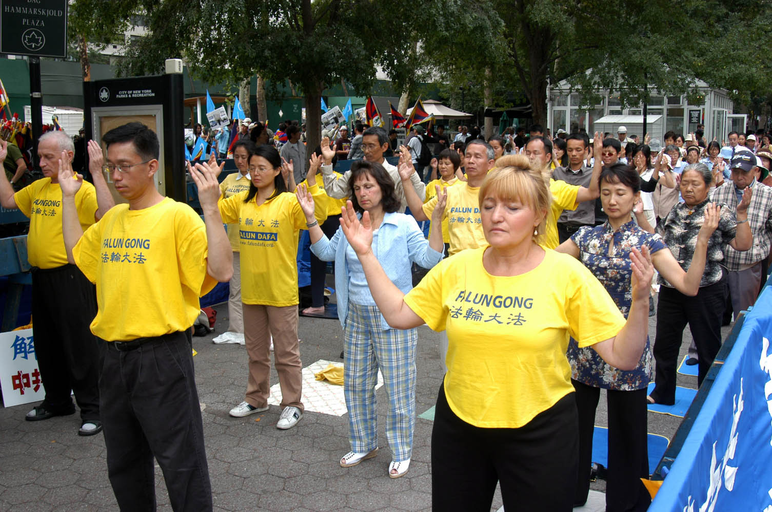 在峰会的首日,法轮功学员在联合国大厦外集会,呼吁国际社会关注法轮功学员所遭受到的残酷迫害,其中包括被酷刑折磨、以及被活体摘取器官等;为了人类尊严和基本人权,支持法轮功学员,一起制止迫害。