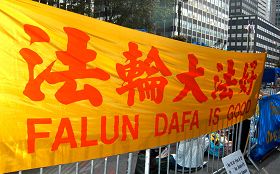![]() 纽约居民Maria Oster母女表示支持法轮功 |