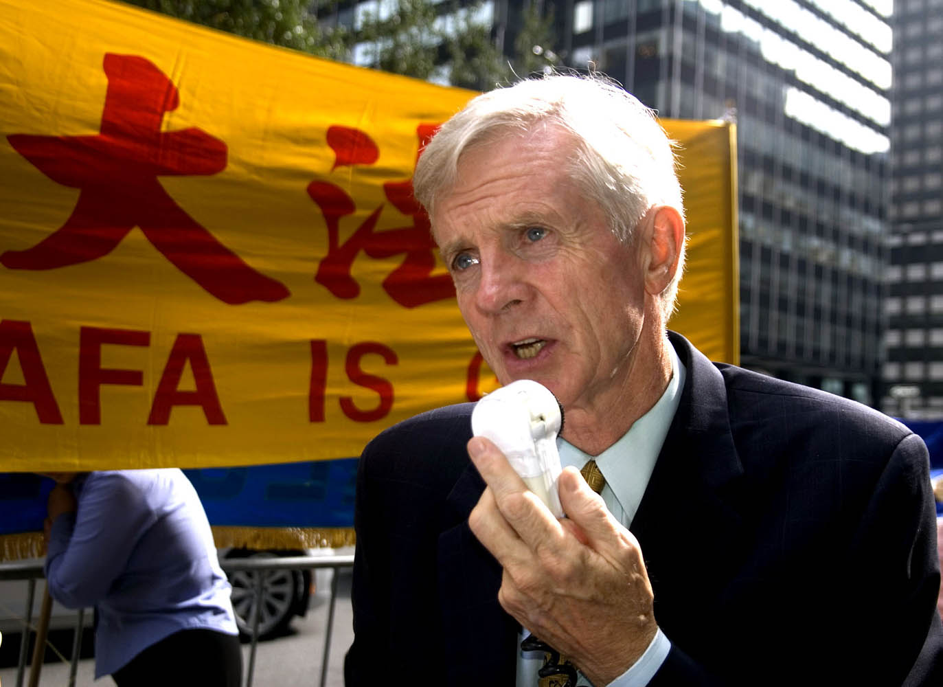 ![]() 前加国会议员乔高在中共党魁入住的沃道夫酒店前呐喊:胡锦涛要“立刻停止迫害”! |
