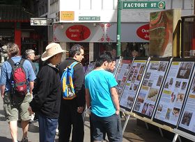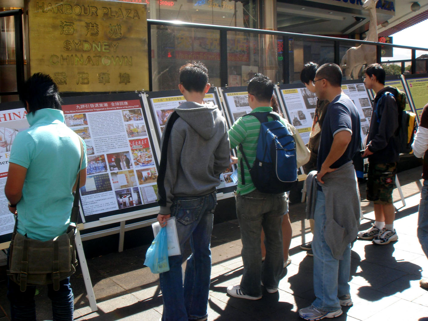 集会上还通过街头剧的形式向人们展示了中共执政六十年里发动的历次运动带给中国人民的深重灾难,特别是中共迫害法轮功修炼者,活摘法轮功学员的器官牟取暴利的暴行,引起很多路人的驻足观看,很多人表示对披露出来的中共暴行感到震惊。当天的大型图片展也吸引了不少民众了解真相,当天就有数十位华人现场退党,并有不少澳洲民众在请愿信上签名表示支持。