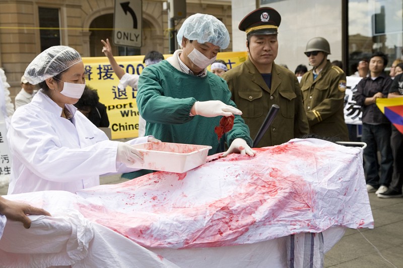 街头剧揭露中共活摘法轮功学员的器官牟利