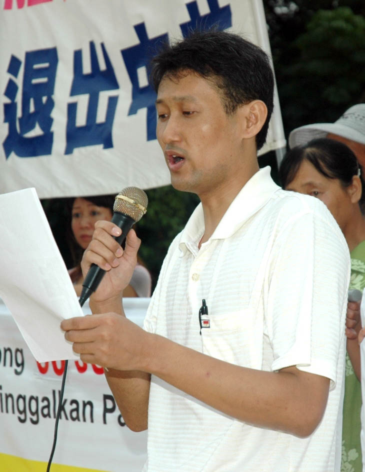 集会中,刚从中国大陆流亡出国的诗人兼作家张杰、与天主教徒庞小雷公开声明退出中国共产邪党及其相关组织(共青团、少先队)。