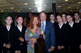 话音刚落,神韵的艺术家们便莅临酒会大厅与嘉宾们见面。在第一时间看到演员们的杰斯曼•沃洛克太太异常兴奋,她向这些杰出的舞蹈演员们欢呼并致意:“我的故乡是纽约,你们太美了,我爱你们(I love you)!”随后,沃洛克夫妇如愿以偿地和神韵纽约艺术团的演员们合影留念。