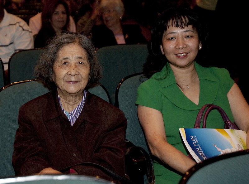 黄女士在中国从事中学化学教学三十四年。观看演出后,母女俩人都很高兴。黄女士说:“我很喜欢这台演出。节目很高雅。天幕、服装都很气派、漂亮。那么多人同台演出,舞蹈很统一、整齐。我最喜欢扇子舞,她们跳得很整齐、很好看。”