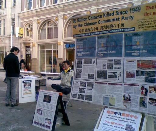 ![]() 法轮功学员们在曼彻斯特市中心讲真相。 |