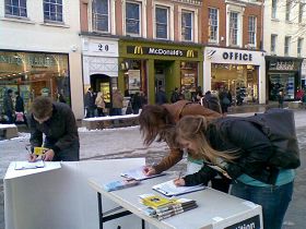 ![]() 曼彻斯特民众在请愿表上签名,表达对法轮功学员反迫害的支持。 |