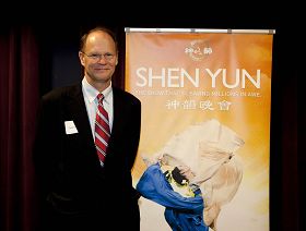 演出结束后,罗利市长向神韵演员表示“希望神韵明年再来。”