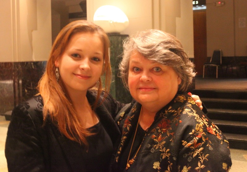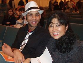 ![]() 阿肯色州著名芭蕾舞大师、舞蹈编导、舞蹈研究专家菅野(Arleen Sugano)女士(右)与芭蕾舞演员乔纳森•博斯蒂克(Jonathan Bostick)(左)对神韵演出赞不绝口。 |