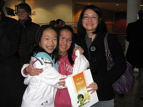 ![]() 香港移民萧太带着女儿Emily、以及女儿的朋友观看了二十三日下午的神韵晚会。 |
