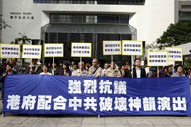 ![]() 香港市民第三天到人民入境处大楼抗议,表达对港府配合中共破坏神韵的强烈不满。 |