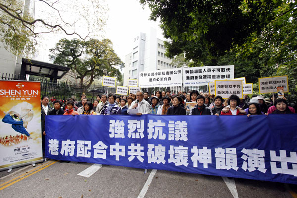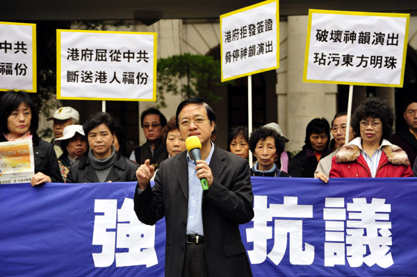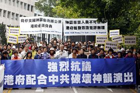 香港各界集会游行抗议港府胁停神韵演出(图)