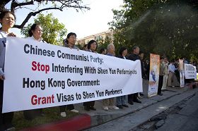洛杉矶集会抗议中共施压香港阻挠神韵演出(图)