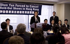 二零一零年一月二十七日上午十点,神韵巡回艺术团团长李维娜在美国首都华盛顿的国家记者俱乐部说:“此时此刻,我们在香港的首场演出本应已接近尾声。