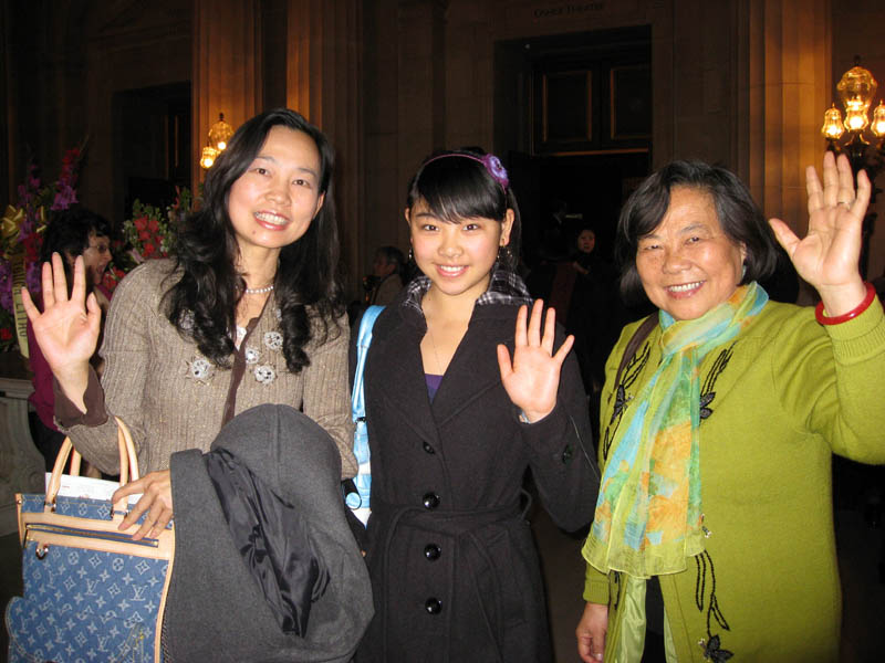 从上海移民旧金山的严女士带着母亲和女儿来看演出。演出结束后,她们走出剧院时,脸上挂着高兴的笑容。严女士说,她很高兴能带学跳舞的女儿来看演出。