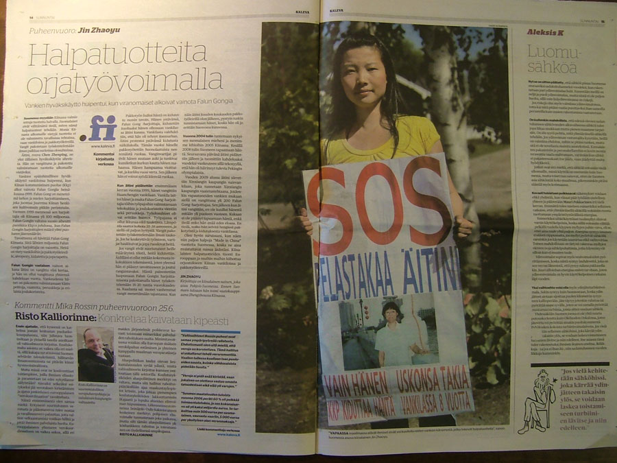 ![]() 图:KALEVA报社整版报道曝光陈真萍所在监狱奴役状况和中国监狱奴役法轮功学员的情况 |