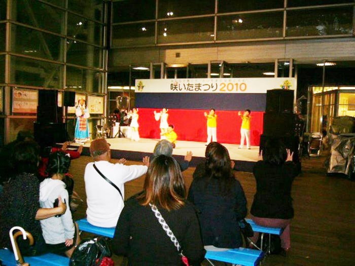 当天也来了很多在日华人,他们也大声喊着:“太棒了,加油啊!”学员们另外还表演了扇子舞和藏族舞,以及舞狮子,也赢得了阵阵掌声。