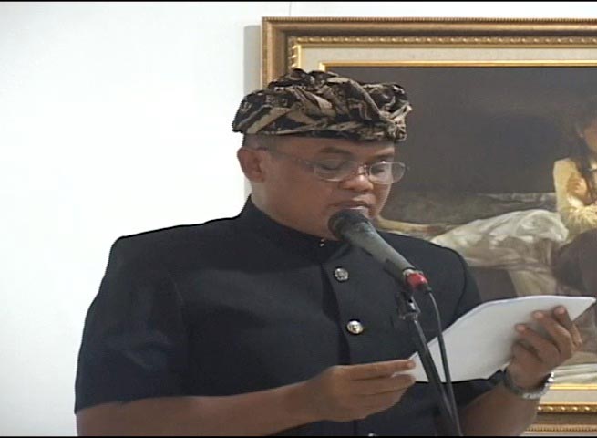 当天下午六时整,在印尼巴厘岛的思卡画廊(Sika Gallery),巴厘岛吉安雅县(Gianyar Regency)旅游与文化总局局长寇克•威蒂亚沙(Cok Widiarsa)在优美的舞蹈中为“真善忍国际美展”开幕,他在致词中表示:“我以吉安雅县政府的名义,对画展的举办表示欢迎,除了让人赏心悦目,也很有教育意义,不论是在画作的技术方面还是要传达的信息方面。用善的思想来创作的画作,自然的会出来好的作品,那是内心的东西。”