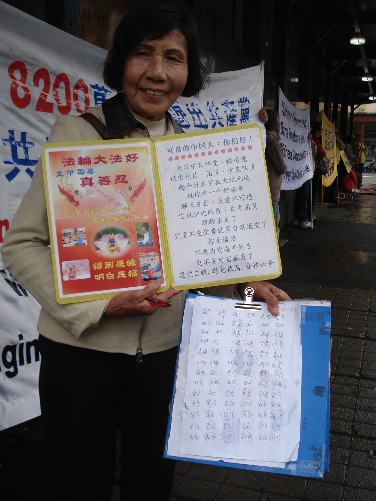 另有几位中国留学生看完真相展板后,没有再多说什么,请学员帮助声明“三退”。