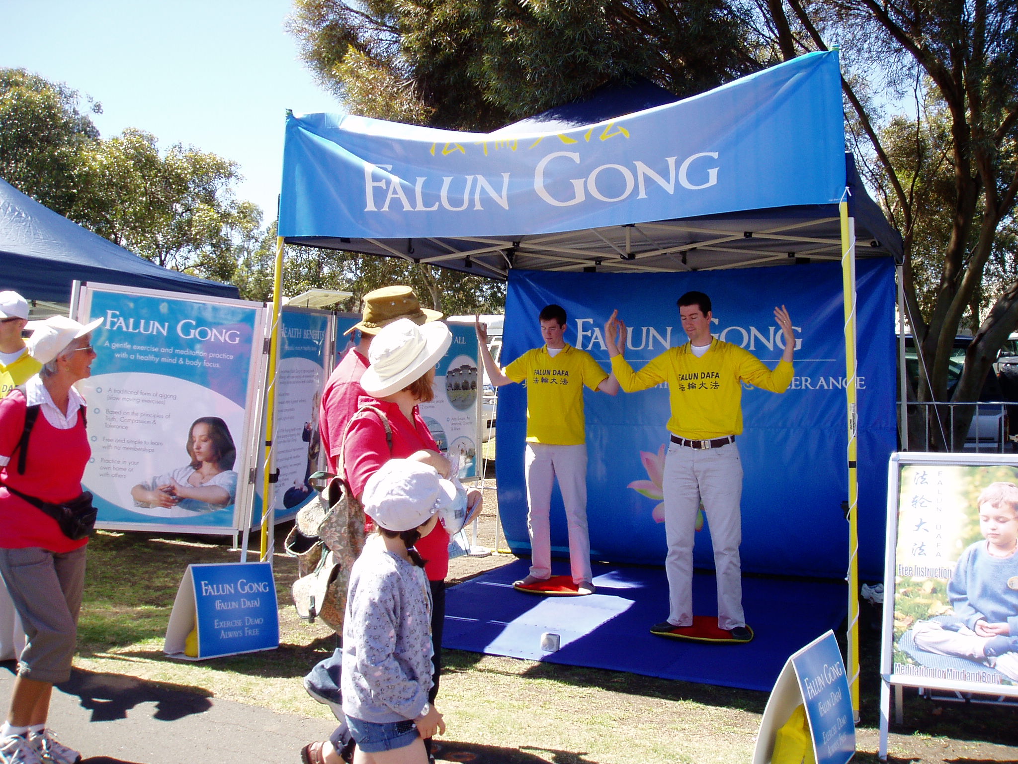 今年,正如往年一样,法轮功优雅的炼功动作让许多人在川流不息的人潮中驻足。他们被法轮功学员散发出的慈悲祥和的能量所吸引。众多的访客接受了真相资料及介绍法轮大法的传单。一些人在制止迫害的请愿书上签名。